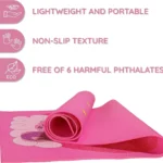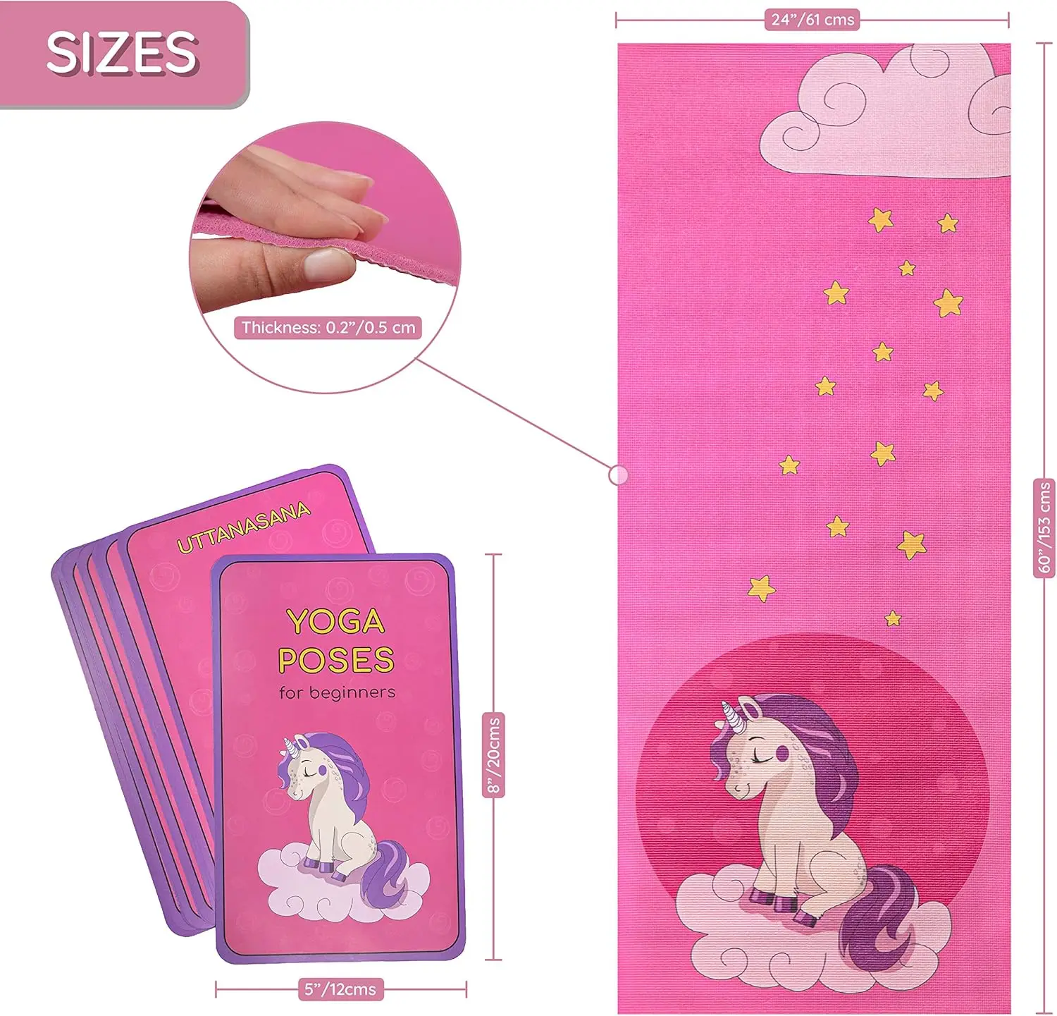 Make fitness fun with the Kids Dinosaur Yoga Mat, specially designed for children ages 3–12. This thick, non-slip exercise mat provides a safe and comfortable surface for yoga, stretching, gymnastics, and active play. The set includes 12 fun activity cards to guide kids through simple poses and movements, helping improve balance, flexibility, and coordination. Lightweight and portable with a convenient carrying bag, it’s perfect for home workouts, playtime, or kids’ fitness activities anywhere.