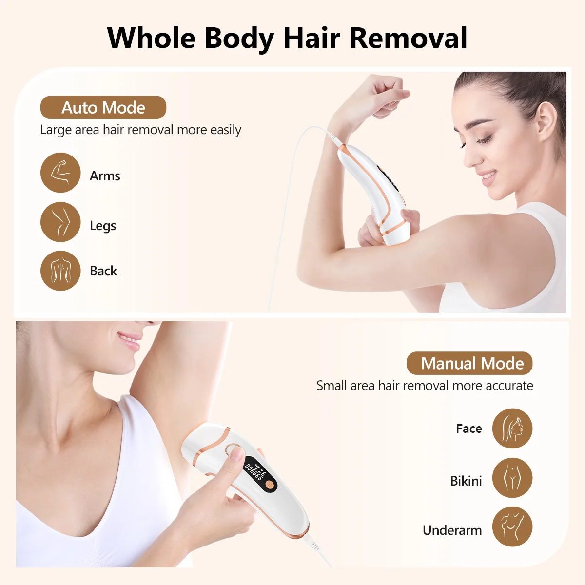 Achieve smooth, hair-free skin with the IPL Laser Hair Remover, designed for long-lasting and gentle hair reduction at home. Featuring up to 999,000 flashes, this device uses advanced light technology to target hair at the root, helping slow regrowth over time. Its painless operation and adjustable intensity levels make it suitable for both men and women, while the compact design allows easy use on multiple body areas. Perfect for convenient, salon-quality hair removal from the comfort of home.