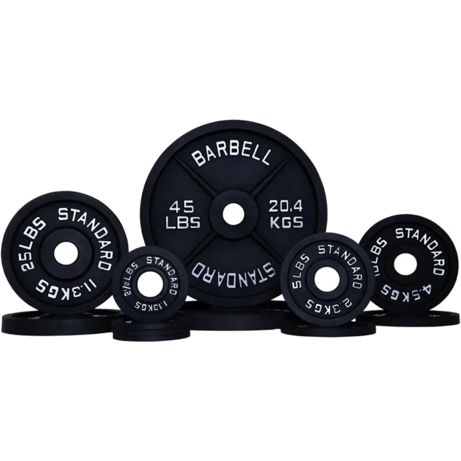 Upgrade your strength training with Olympic Barbell Weight Plates, designed to fit all standard 2-inch Olympic barbells for a secure and balanced lift. Made with durable powder-coated material, these plates resist rust, chipping, and wear, ensuring long-lasting performance through intense workouts. With a precise tolerance guarantee for accuracy and balance, they’re perfect for exercises like squats, bench presses, deadlifts, and other strength-building routines at home or in the gym. 💪